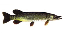 ŠtukaEsox lucius (L. 1758)Tijelo je izduženo i pokriveno sitnim ljuskama. Usta su velika, sa zubima iglastog oblika. Leđno i podrepna peraja je pomaknuta nazad. Boja tijela je sivozelena, leđa su tamna a bokovi svijetli, sa krupnim pjegama, koji mogu formirati poprečne pruge. Neparne peraje su žutosive, sa pjegama poredanim u redove. Štuka može narasti do 1,5 metar i 35 kilograma, ali je obično znatno manja. Živi u mirnijim tekućicama i u jezerima. |